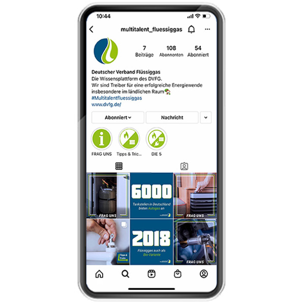 Social Media liegt im Trend. Laut "Trendmonitor Deutschland" nutzten 29 % der Bundesbürger die digitalen Kanäle im Jahr 2020 häufiger als ein Jahr zuvor. Der DVFG hat reagiert und ist seit 8. Dezember auch auf Instagram aktiv. Unter @multitalent_fluessiggas bietet der Verband auf Instagram eine neue Wissensplattform, die den direkten Austausch ermöglicht und spannende Informationen rund um den emissionsarmen Energieträger Flüssiggas vermittelt.