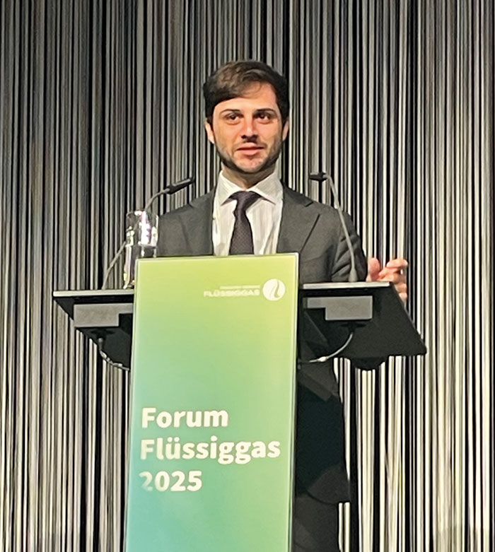 Einer der Redner, Leonhard Woessner, ist als leitender Referent für Politik beim Europäischen Flüssiggasverband Liquid Gas Europe bestens mit den Gegebenenheiten und Abläufen innerhalb der Europäischen Institutionen vertraut. In seinem Vortrag "Energiewende auf Europäisch: Stand und Perspektiven" schilderte er die momentane Situation, mit der er umzugehen hat: