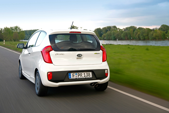 Das bivalente Modell verfügt über zwei Kraftstofftanks: Den regulären 35-l-Benzintank vor der Hinterachse und einen 27-l-LPG-Drucktank unter dem Gepäckraumboden, in dem Bereich, der sonst für das Reserverad genutzt wurde. Mit einer Taste am Armaturenbrett lässt sich die Betriebsart von LPG auf Benzin und umgekehrt umstellen. Im LPG-Betrieb hat der Kia Picanto eine CO2-Emission von 100 g/km und verbraucht durchschnittlich 5,8 l Autogas pro 100 km. Das LPG-Modell hat damit noch niedrigere Betriebskosten als die ohnehin schon sehr günstigen Benziner-Versionen des Kia Picanto.