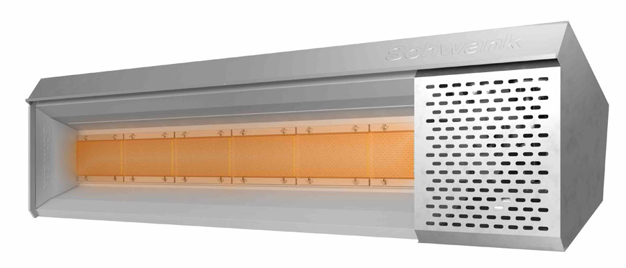 Weltpremiere feiert die neue Hellstrahlergeneration evoSchwank+. Diese Geräteserie ist die leistungsfähigste und sauberste, die der Erfinder dieser Technologie jemals entwickelt hat. evoSchwank+ kombiniert erstmals einen perfekt abgestimmten Gas-Luft-Verbund mit einem vollisolierten Hochleistungsstrahler und bündelt beides in einem Gerät. Damit verabschiedet sich Schwank in dieser Baureihe vom atmosphärischen Brenner und setzt auf das innovative und umweltfreundliche Gas-Luftverbundprinzip, symbolisiert durch das Plus am Ende des Namens. So setzt der evoSchwank+ in dieser Entwicklungsstufe einmal mehr den technischen Maßstab: Das vollvermischende System garantiert über alle Modulationsbereiche eine perfekt saubere Verbrennung im Low-NOx-Bereich bei durchweg konstanten Wirkungsgraden. Die evo-Serie kann darüber hinaus auch bei extrem niedrigen Anschlussdrücken ab 20 mbar zum Einsatz kommen. Ein weiterer Mehrwert ist die Flammenstabilität der evoSchwank+ Hellstrahler bei Windlast. Werden die Hellstrahler beispielsweise in zugigen Bereichen oder im Außenbereich eingesetzt (Torbereiche, Sportstätten etc.) bedarf es keiner zusätzlichen Windabschottung mehr. Wie alle Schwank Infrarotstrahler sind die evoSchwank+ serienmäßig stufenlos modulierend und können dank intelligenter Regelung nahtlos in die Gebäudeinfrastruktur integriert werden.