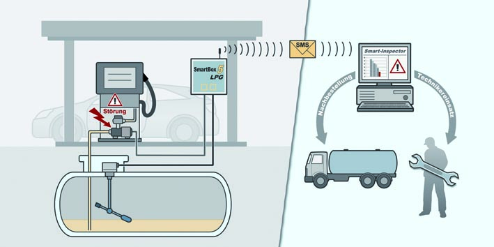 Dabei können mehrere Flüssiggasanlagen von einer zentralen Stelle aus betreut werden. Der Einsatz von LPG PRO optimiert die Verwaltung von Autogas-, Industrie- und Haushaltstankanlagen – das spart Kosten und gewährleistet eine hohe Versorgungssicherheit. Die SmartBox, ein GSM-