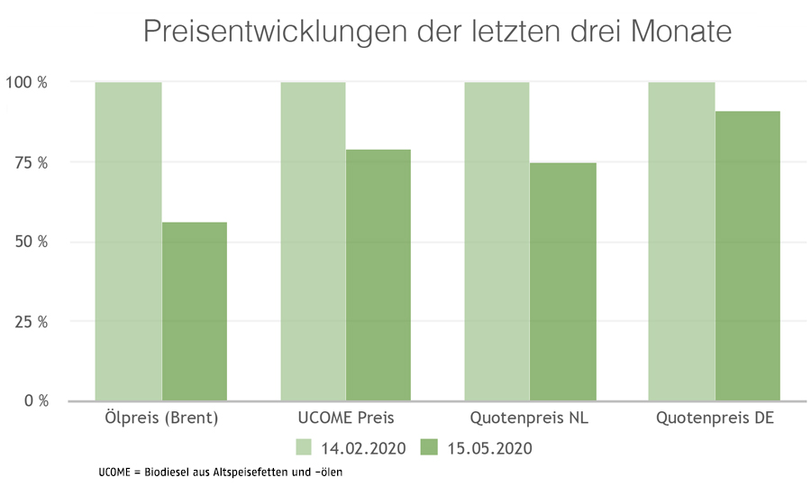 Der Quotenwert wird üblicherweise anhand der Biodieselpreise berechnet. Jedoch spielen auch neue Gesetzgebungen oder Marktschwankungen eine Rolle. Seit Beginn der Corona-Epidemie haben sich bis Mitte Mai einige Werte im Transportsektor verändert.