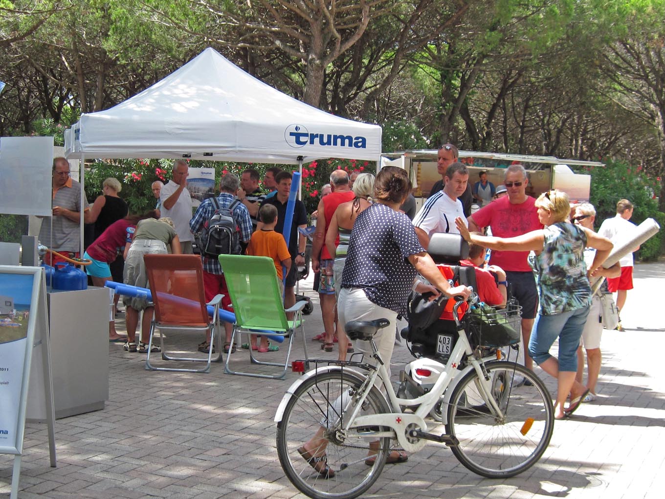 Dieses Jahr war Truma vom 20. bis 27. Juli 2011 auf vier beliebten Campingplätzen der italienischen Adria unterwegs: Union Lido Vacanze, Camping Garden Paradiso, Jesolo International Camping Club und Camping Marina di Venezia. Im Mittelpunkt der Promotion stand die neue Dachklimaanlage Aventa comfort, von deren Vorzügen sich die Besucher im Truma Caravan überzeugen konnten. Entscheidungsfreudige Camper nutzten die Möglichkeit, die Aventa comfort mit einem Preisnachlass von 150 Euro direkt beim Händler vor Ort zu erwerben und in ihr Fahrzeug einbauen zu lassen.
