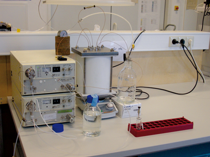 Nach 18 Monaten Forschungsarbeit hat der Projektleiter Prof. Kai-Uwe Hinrichs einen Zwischenbericht vorgelegt, der den Stand und den bisherigen Verlauf der Untersuchungen dokumentiert. Der Bericht belegt eindrucksvoll den enormen Aufwand, der zur experimentellen Nachbildung der mikrobiellen Prozesse unter Tiefsee-Bedingungen erforderlich ist. So lag der Arbeitsschwerpunkt bisher auf der Entwicklung eines so genannten Druck-Temperatur-Gradient-Blocks (p-T-Block), der dazu passenden Inkubationsgefäße und eines Mischungsdruckbehälters zur Herstellung von gasgesättigten Medien (mixing chamber). Der Versuchsaufbau musste so konstruiert werden, dass er Arbeiten unter Drücken von bis zu 20 bar und bei Temperaturen von 4 bis 90?°C zulässt. Eine technisch anspruchsvolle Aufgabe, die in Zusammenarbeit mit der Firma Meerestechnik Bremen GmbH und mit Wissenschaftlern vom Max-Planck-Institut für marine Mikrobiologie gelöst werden konnte. "Im Oktober 2008 waren Entwicklung, Materialprüfung und Herstellung der einzelnen Komponenten so weit abgeschlossen, dass wir den Druck-Temperatur-Gradient-Block in unserem Labor zusammenbauen und zusammen mit dem Mischungsdruckbehälter in Betrieb nehmen konnten", so Prof. Hinrichs.